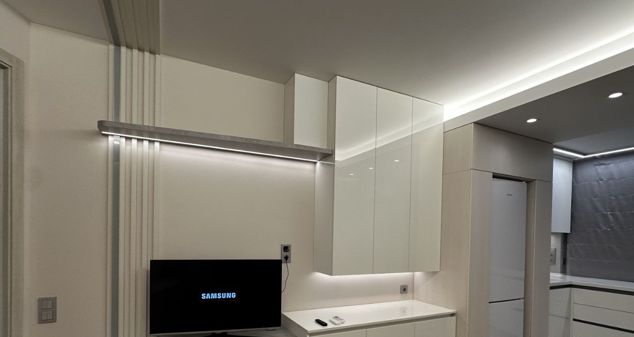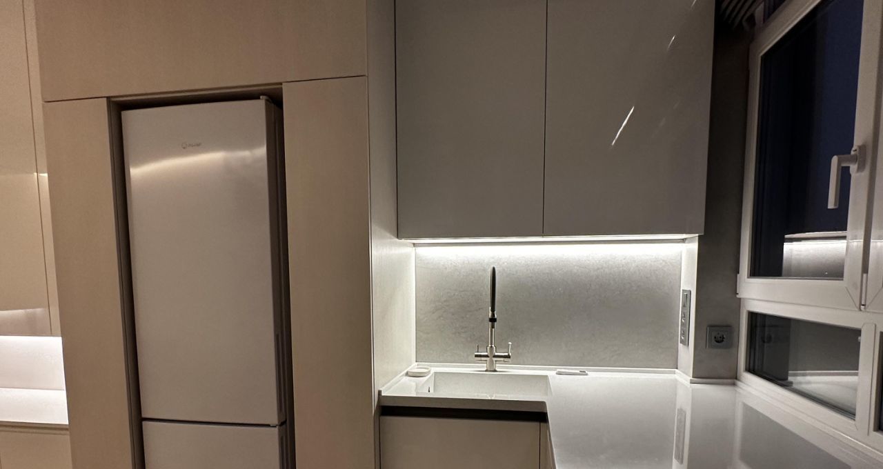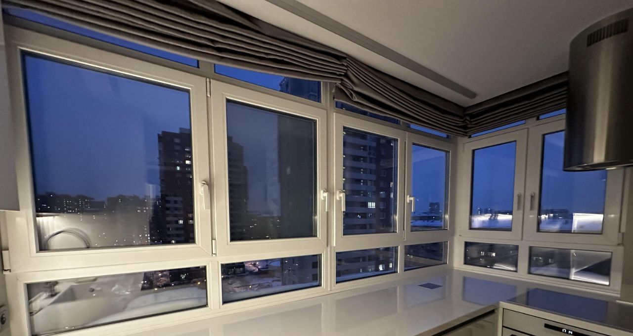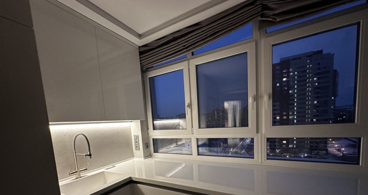 Новый дизайнерский ремонт, светлое пространство, панорамные окна на кухне, большое количество мест для хранения, различные варианты освещения, вид на город, нет шума от дорог.