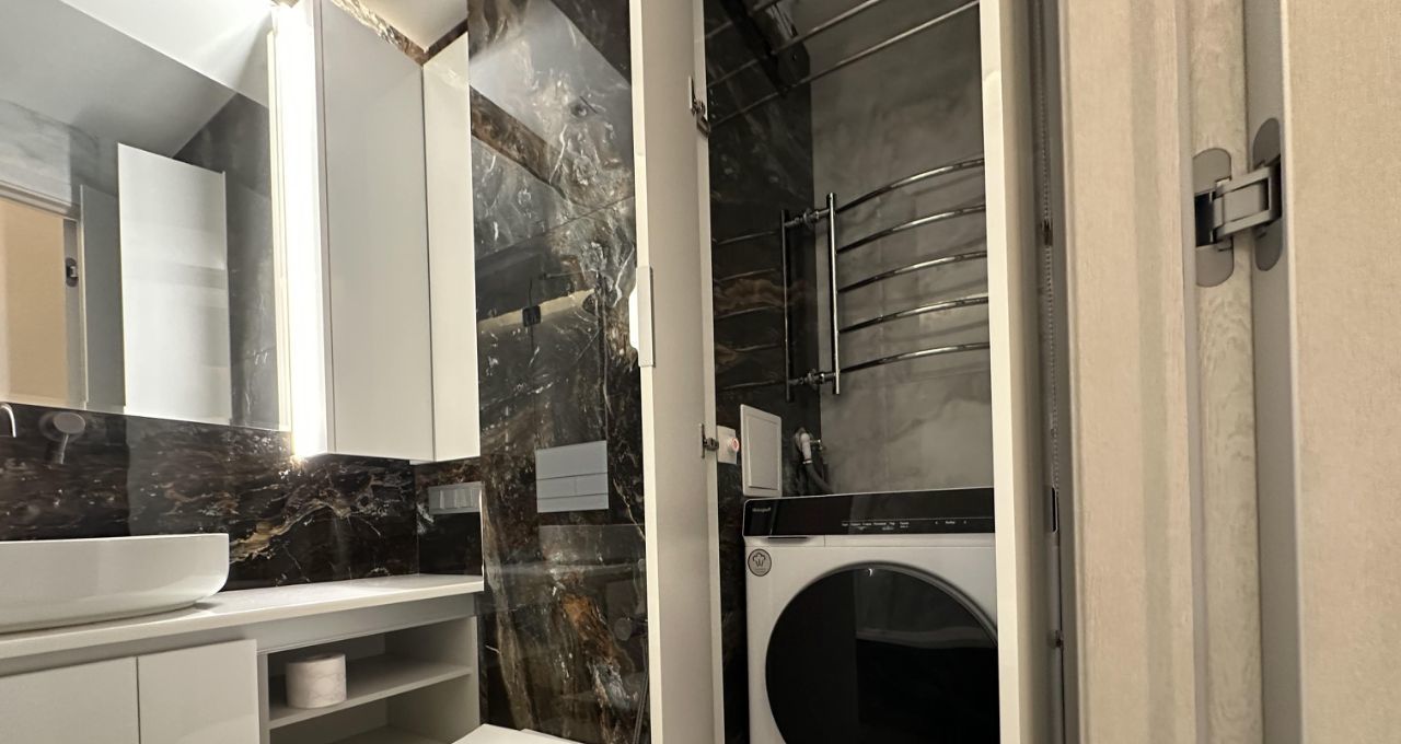 Теплые полы, паркет, кондиционеры, посудомоечная машина и духовая печь/микроволновка Weissgauff, индукционная плита, фильтр для воды Барьер, телевизор, Wi-Fi, рулонные black out шторы на автоматическом управлении, стиральная машина Weissgauff с сушкой в скрытом пространстве.