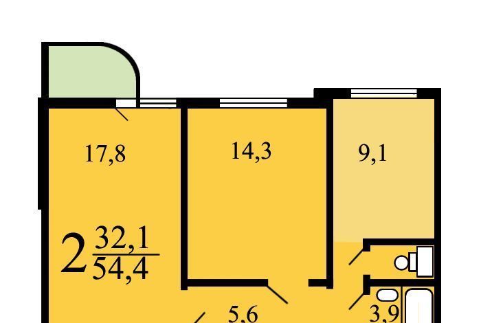 2-к кв. Москва ул. Перерва, 68/35 (54.0 м²)