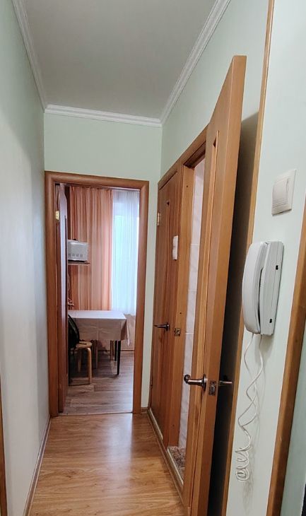 На длительный срок сдаётся квартира на 8- м этаже панельного 9-ти этажного дома в пешей доступности (буквально 5-7 минут ) от метро Отрадное. Вся бытовая техника и мебель, необходимая для жизни в наличии. Пол- везде ламинат, туалет и ванная комната раздельные-в плитке. Кондиционеры в двух комнатах. В ванной установлена современная душевая кабина. Комнаты изолированные: 18 кв. м (с выходом на застеклённый балконон) и 11 кв.м Вид из всех окон -во двор на окнах установлены пластиковые стеклопакеты. На кухне: кухонный гарнитур, электролита, обеденный стол, стулья. Комната 18 кв.м с двуспальным диваном и несколькими шкафами. Комната 11 кв.м с кроватью и небольшим шкафчиком. Есть два небольших телевизора. Железная дверь в саму квартиру и вторая дверь в закрывающийся тамбур на две квартиры, функционирующие домофон, телефон МГТС.