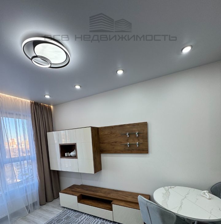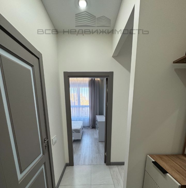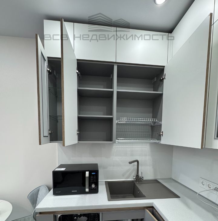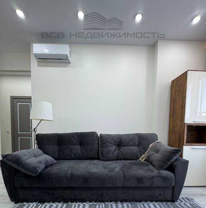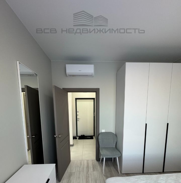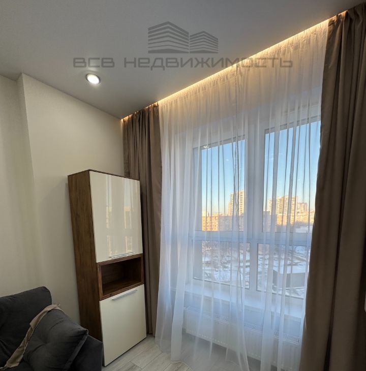 Квартира полностью укомплектована встроенной мебелью. Уютная спальная комната с большой кроватью, комодом и вместительным шкафом. Просторная кухня-гостиная со всей необходимой техникой включая и мебелью, а также имеется диван-кровать, который можно использовать, как дополнительное спальное место. Полноценная ванная комната, в которой просторная душевая, большая раковина с зеркалом, стирально-сушильная машинка и мебель для хранения разных вещей и душевых принадлежностей. Окна выходят на восток, солнце в первой половине дня, вид открытый на жилой район. Квартира светлая, за счет увеличенной площади остекления и очень теплая.