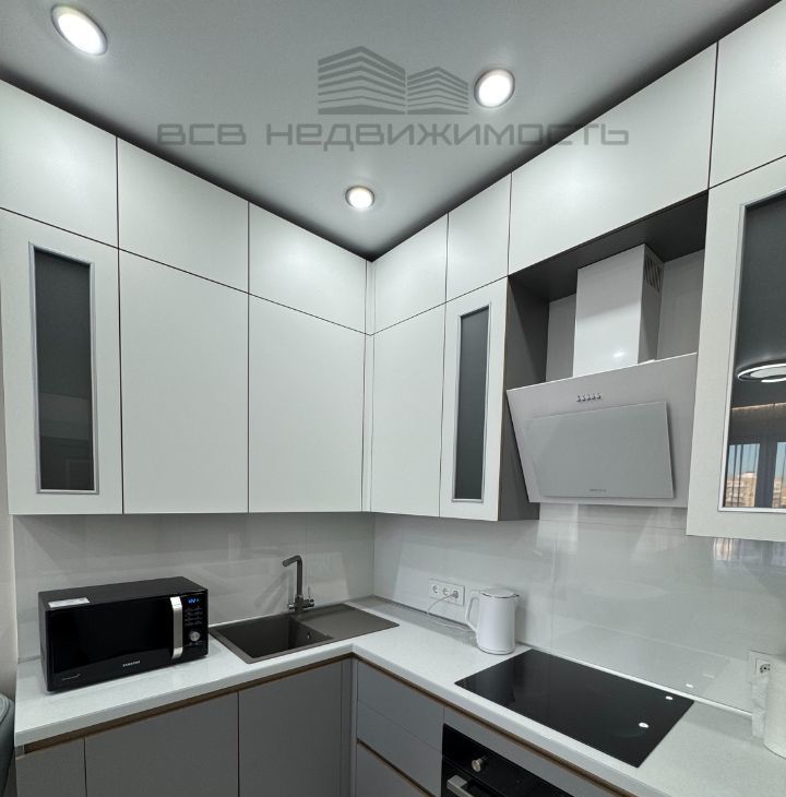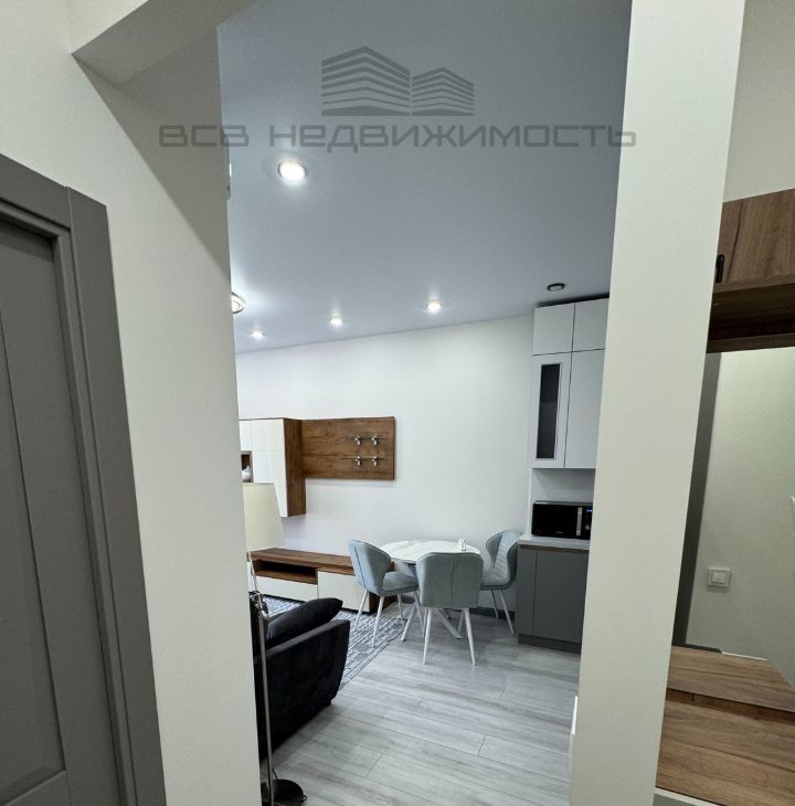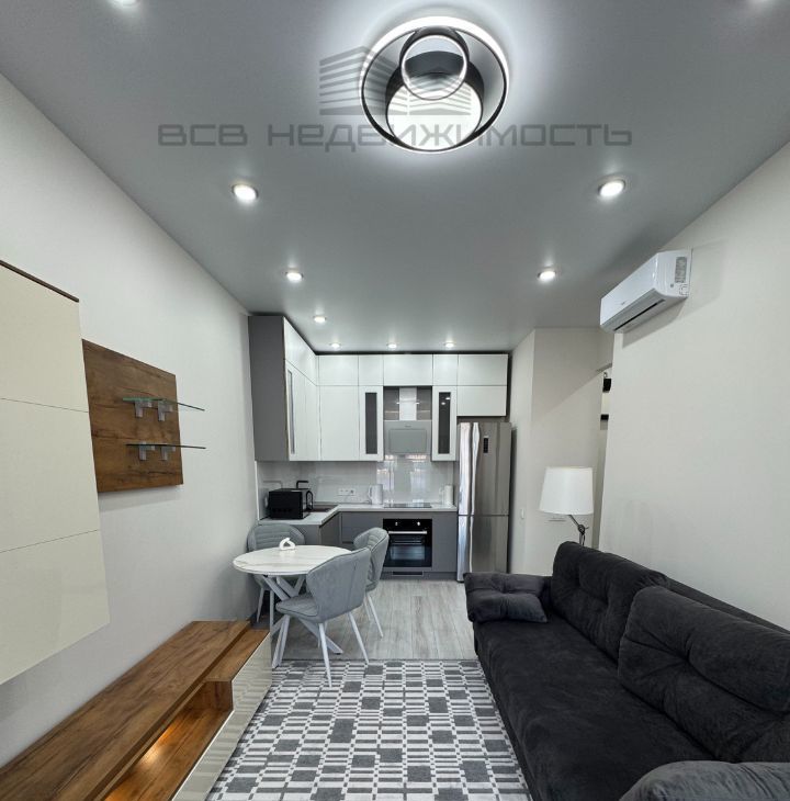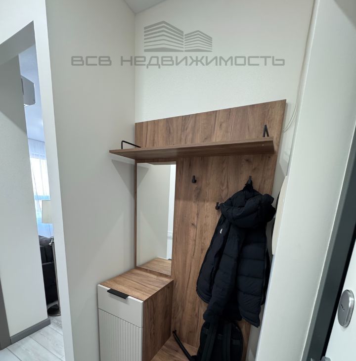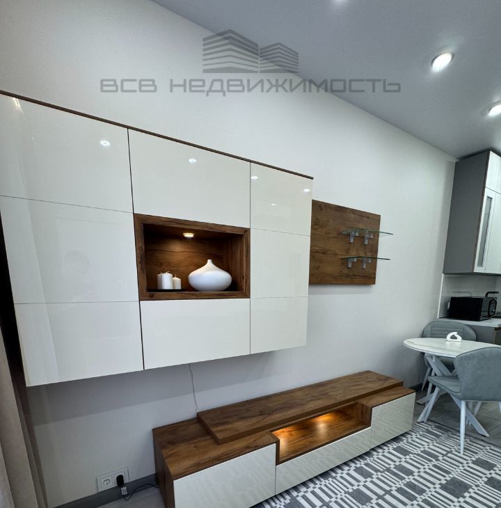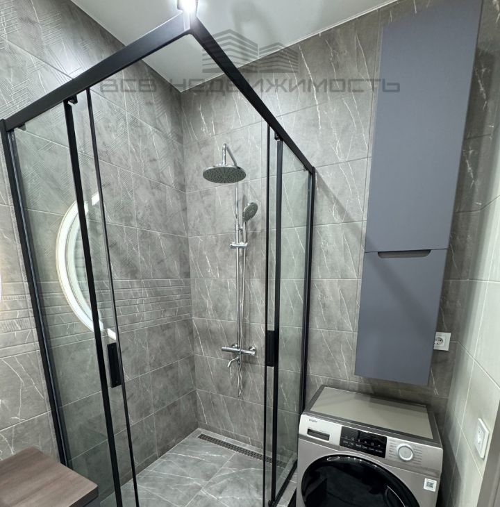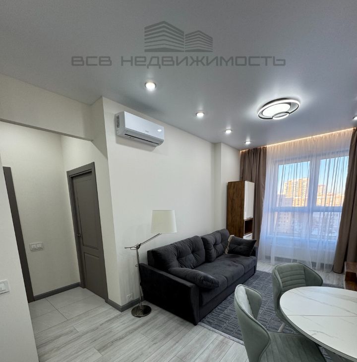 Квартира полностью укомплектована встроенной мебелью. Уютная спальная комната с большой кроватью, комодом и вместительным шкафом. Просторная кухня-гостиная со всей необходимой техникой включая и мебелью, а также имеется диван-кровать, который можно использовать, как дополнительное спальное место. Полноценная ванная комната, в которой просторная душевая, большая раковина с зеркалом, стирально-сушильная машинка и мебель для хранения разных вещей и душевых принадлежностей. Окна выходят на восток, солнце в первой половине дня, вид открытый на жилой район. Квартира светлая, за счет увеличенной площади остекления и очень теплая.