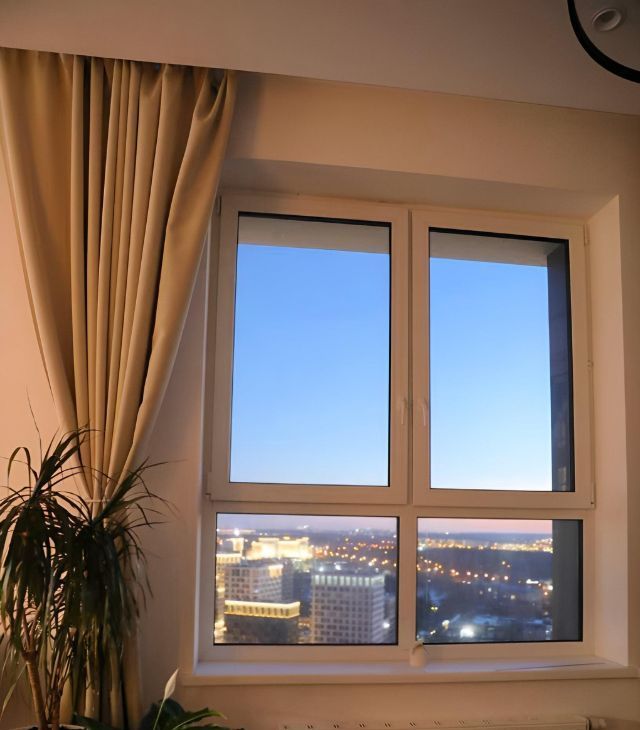 Окна выходят на набережную реки Сетунь, на юг и на запад. Квартира очень светлая, по вечерам красивые закаты. В квартире тихо с открытыми окнами, ночью слышно как поют соловьи.