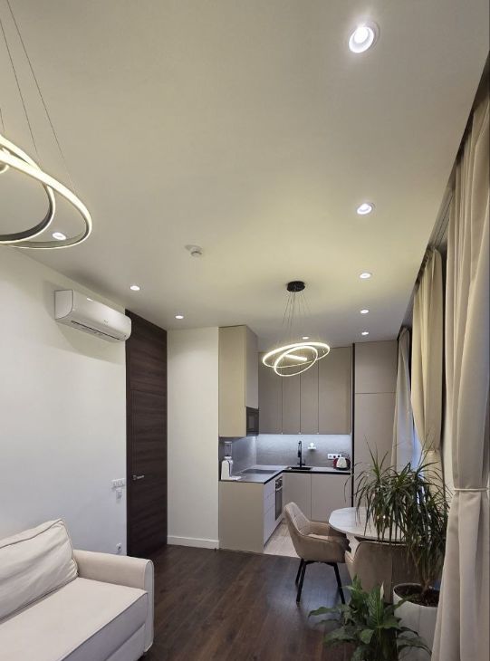 В квартире отличный новый ремонт, мебель и техника. Есть все что нужно для комфортной жизни: два кондиционера, посудомойка, стиралка с сушилкой и т п. Инфраструктура района прекрасно развита: ВкусВил, Пятерочка, пекарни, кафе, аптека, пункты выдачи, World Class с бассейном и другие фитнес клубы и студии.