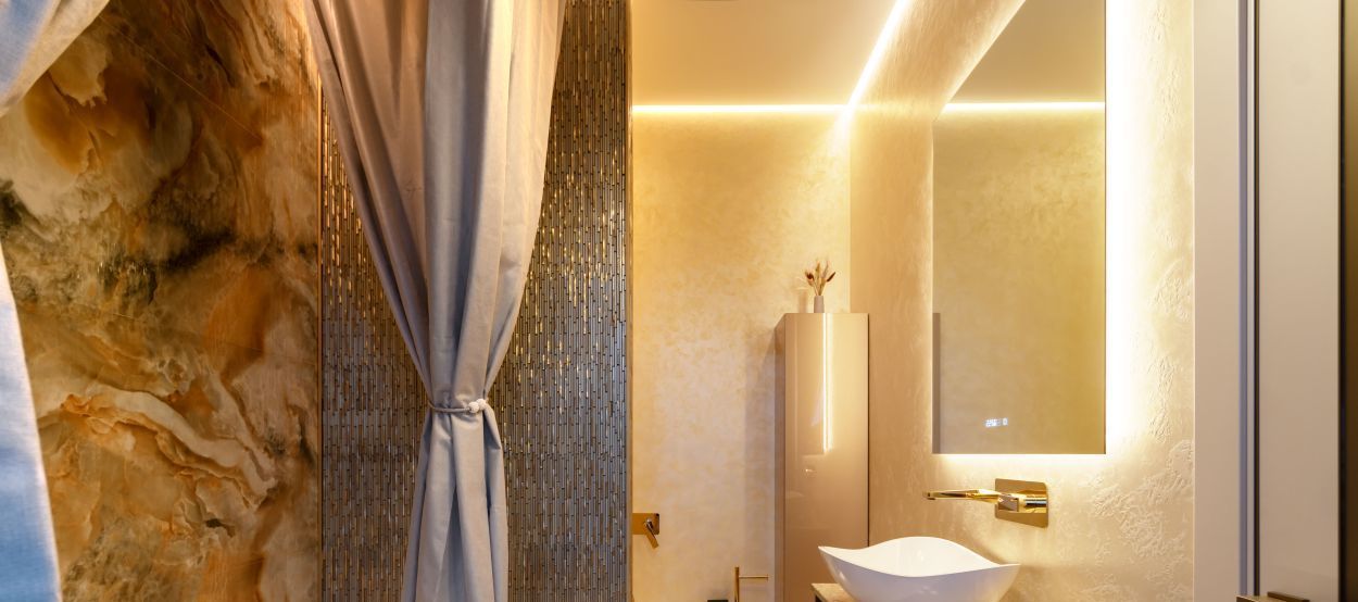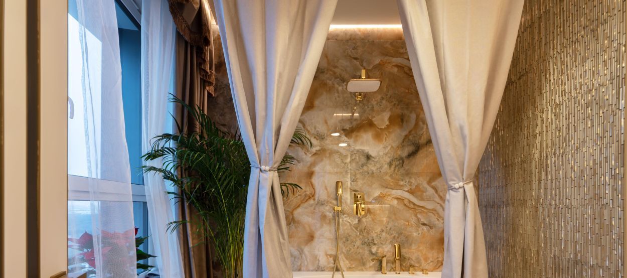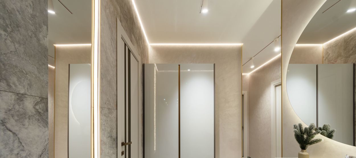 Квартира полностью укомплектована всей необходимой мебелью и техникой. Освещение и электроприводы элементов интерьера управляются электронным ассистентом умного дома(рулонные шторы, теплый пол, верхняя и нижняя подсветка, люстры, бра)).