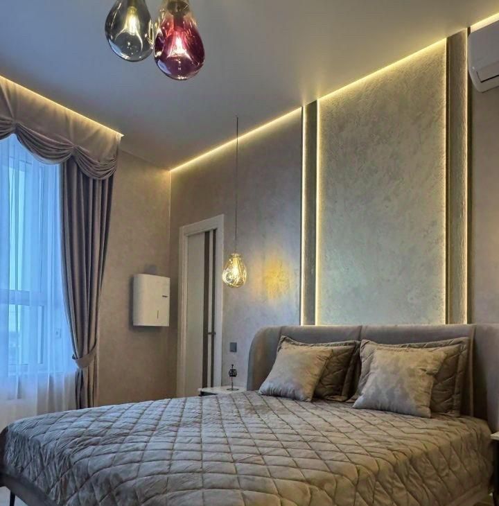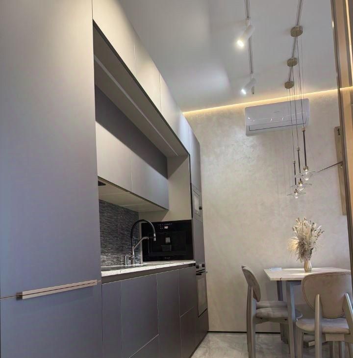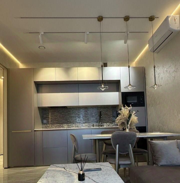В квартире выполнен дизайнерский ремонт, который создает уют и современный стиль. Просторная кухня идеально подходит для семейных ужинов. В квартире есть вся необходимая техника: кондиционер, холодильник, телевизор и стиральная машина. Мебель присутствует как на кухне, так и в комнате. Два совмещенных санузла, что обеспечивают комфорт для всей семьи.