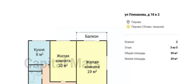 2-к кв. Москва ул. Плеханова, 18К2 (59.0 м²)