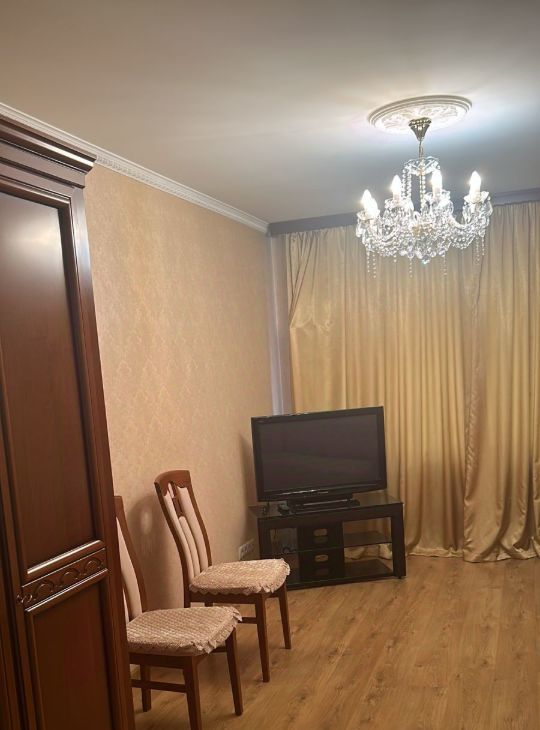 Гостинная, спальня, кухня. Квартира укомплектована всей необходимой бытовой техникой, включая посудомоечную машину и кондиционер, и гарнитурной мебелью.