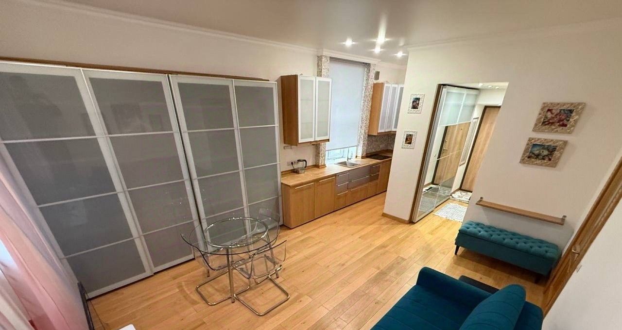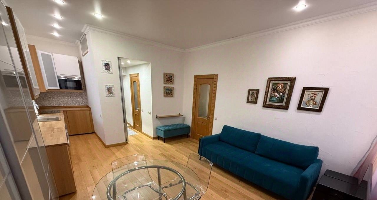 Функциональная планировка: просторная гостиная, объединенная с кухней; уютная спальня; санузел с ванной. Балкон с выходом на Барыковский переулок. Все комнаты светлые с большими окнами.