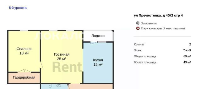 Предлагается 2-комнатная квартира общей площадью 69 м² недалеко от станции метро "Парк культуры". Для комфортного проживания в наличии имеется вся необходимая мебель. Кухонный гарнитур оснащен посудомоечной машиной, духовой печью. Для удобства организованы две гардеробные комнаты. Из дополнительных преимуществ - наличие лоджии. Окна обращены во двор, обеспечивая тишину.