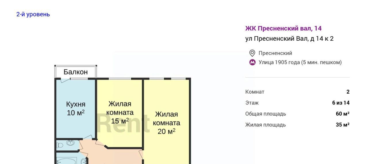 2-к кв. Москва ул. Пресненский Вал, 14к2 (60.0 м²)
