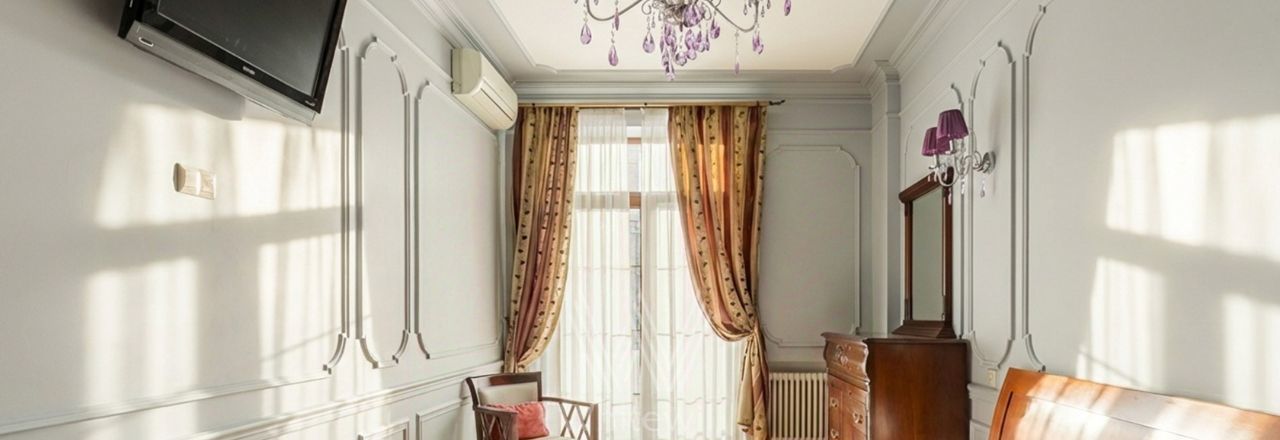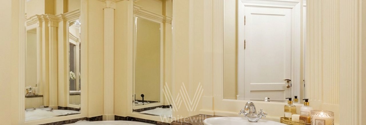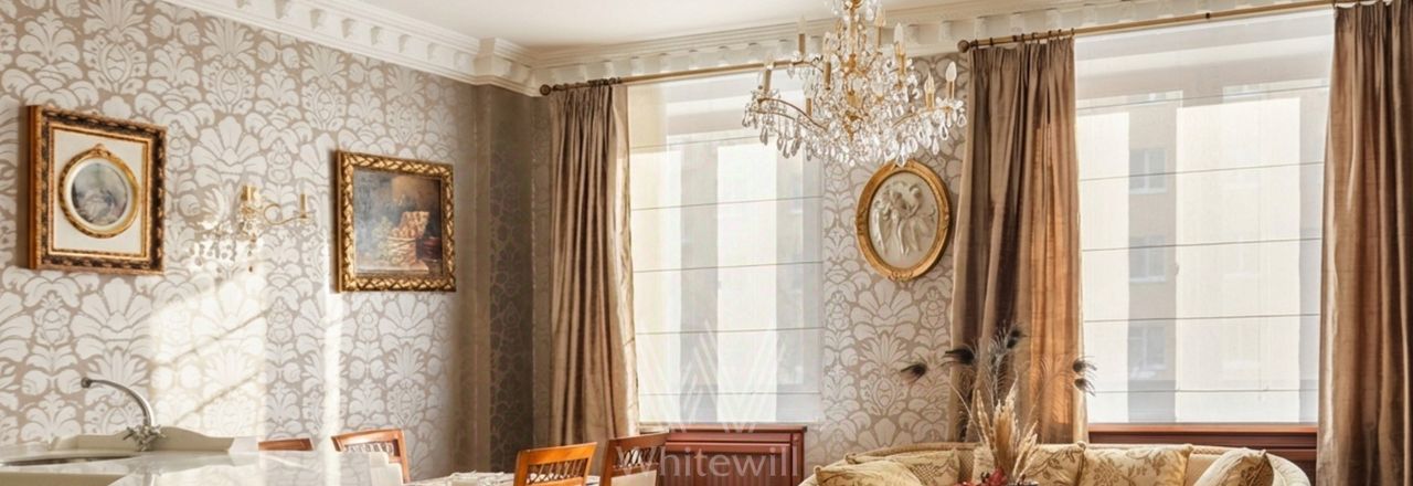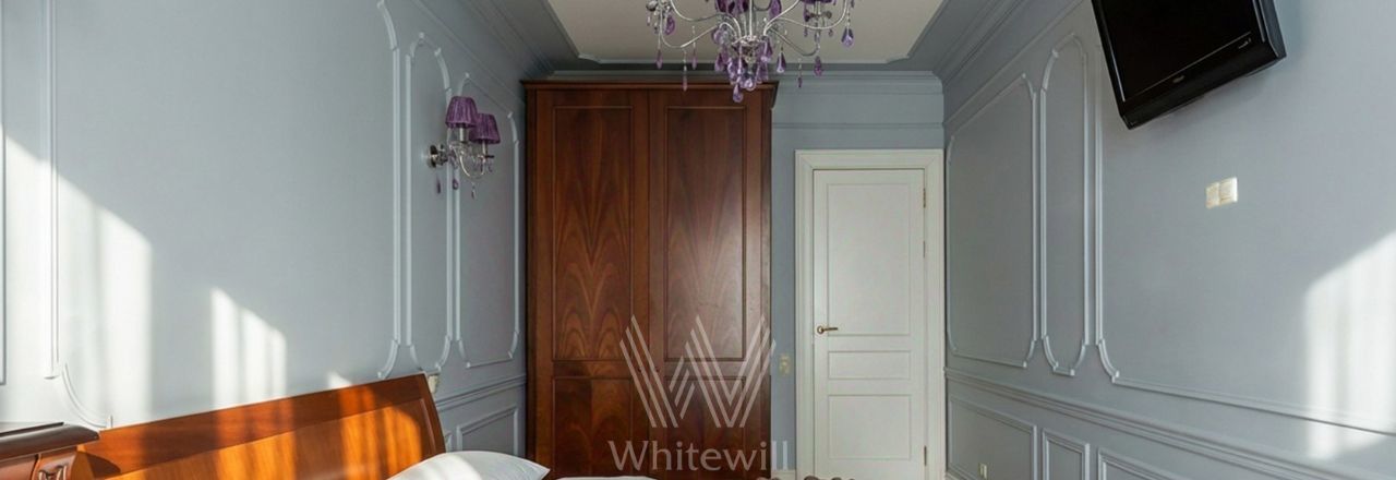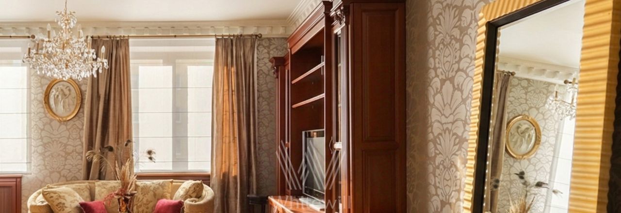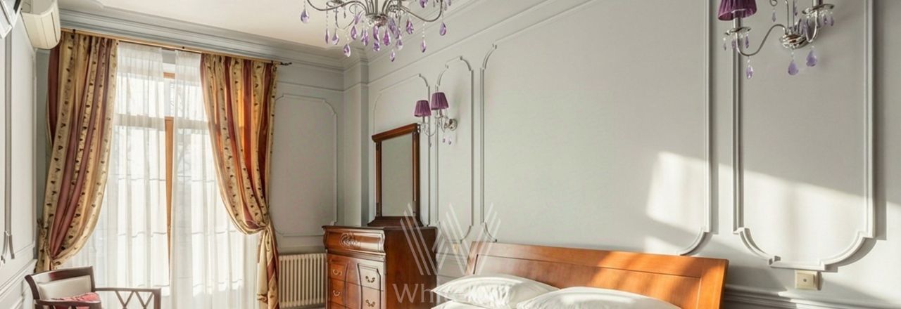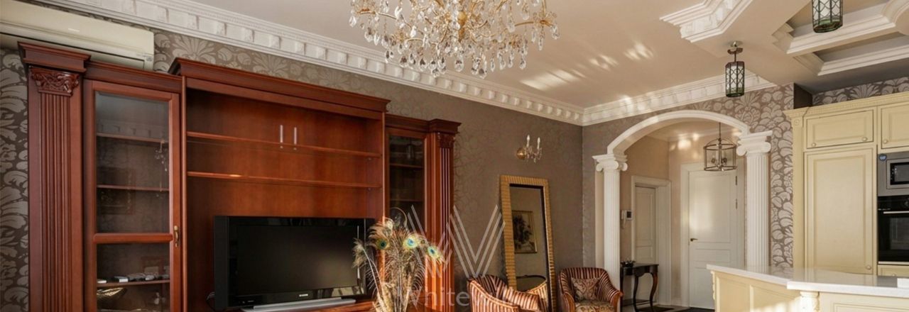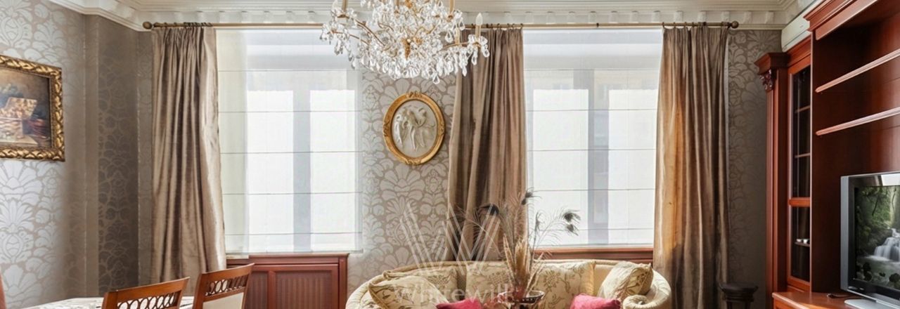 Уютная квартира с одной спальней общей площадью 80 м² в доме "Пресненский вал, 16" в Пресненском районе. Интерьер оформлен в классическим стиле, украшен картинами и колоннами. Спланирована кухня-гостиная с обеденной зоной, спальня с окнами в пол, ванная комната с джакузи и душем, гардеробная, холл, балкон. Квартира полностью меблирована и укомплектована бытовой техникой. Установлена система кондиционирования, стиральная и посудомоечная машина. Из окон открывается вид во двор и на "Москва-Сити".