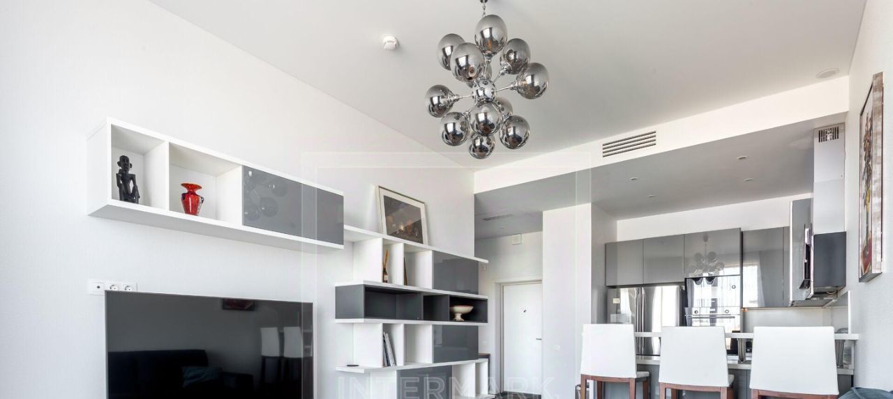 ID 44222: Лаконичная двухкомнатная квартира в ЖК бизнес-класса "Пресненский вал, 21" в престижном Пресненском районе Москвы.. Максимально продуманная планировка, функциональный интерьер в современном стиле. Квартира полностью меблирована премиальной мебелью, оборудована всей необходимой бытовой техникой, организовано необходимое количество мест хранения. В квартире установлены: большой холодильник с ледогенератором, варочная панель, духовой шкаф, вытяжка, посудомоечная машина, микроволновая печь, капсульная кофеварка, стиральная и сушильная машины, 2 телевизора, центральное кондиционирование, интернет, просторная гардеробная в спальне. Планировка: гостиная студийной планировки + изолированная спальня. Панорамные виды на Северо-Восток города. Презентабельная входная группа с круглосуточным консьержем. Дом с подземной парковкой. Хорошая транспортная доступность, развитая инфраструктура. Ключи на руках.