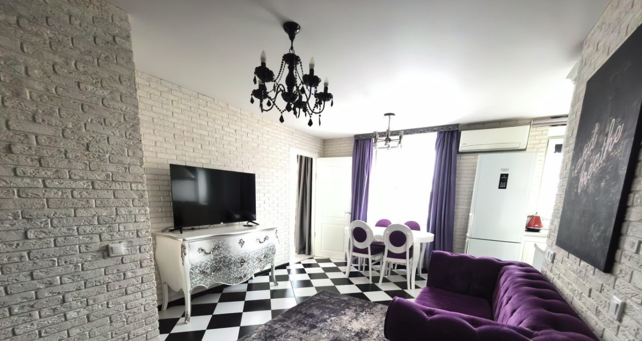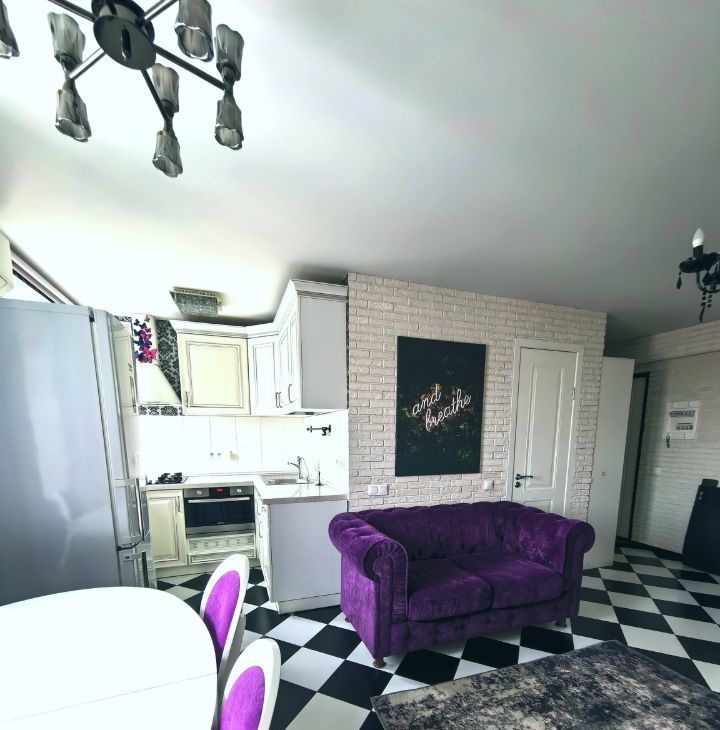 В квартире: кухня совмещенная с гостинной и коридором, совмещенный санузел, спальня и гардеробная (7 метров!!!). Из спальни выход на балкон (для безопасности облицован прозрачным оргстеклом). В гостиной комод и телевизор (50 дюймов). Новая кровать. Есть парковка во дворе за шлагбаумом. Коммунальные платежи по счетчикам + интернет. Аренда только на длительный срок (от года)! В субаренду не сдаю!!!