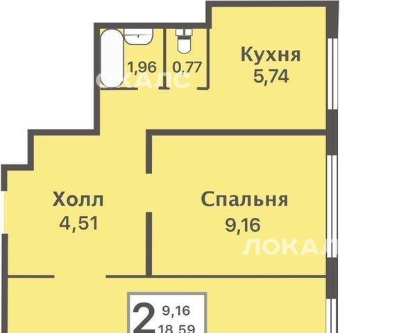2-к кв. Москва ул. Пришвина, 13Б (40.73 м²)