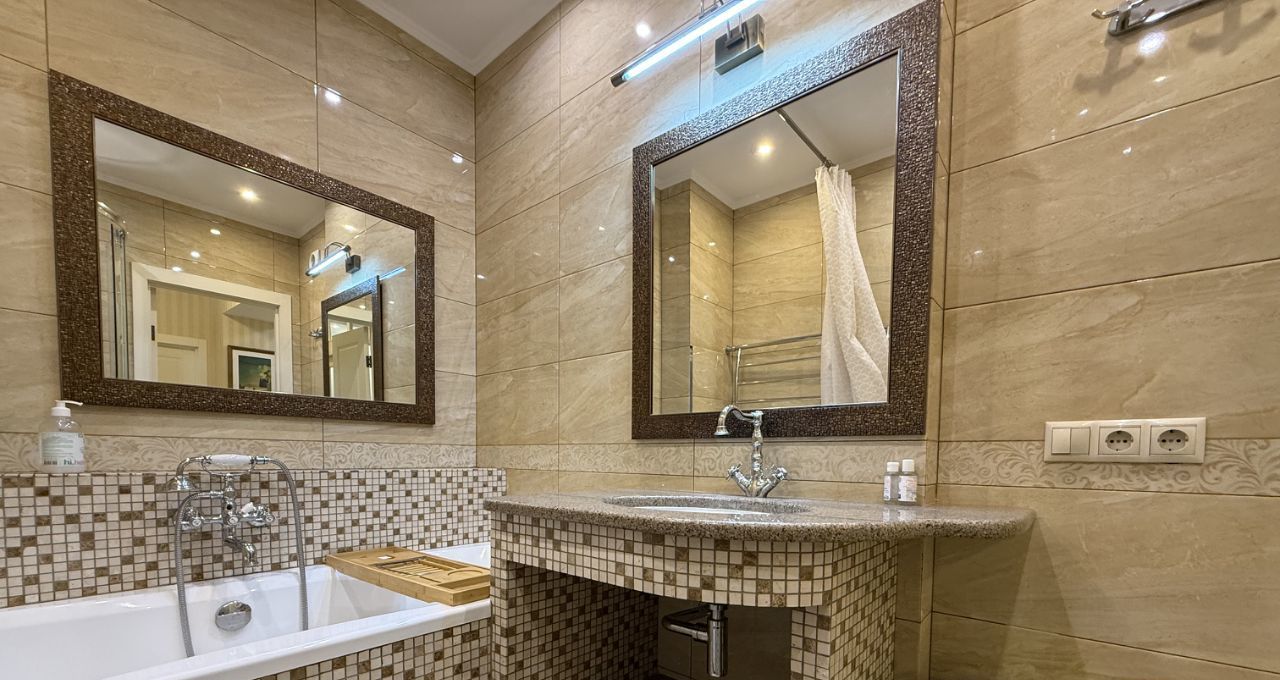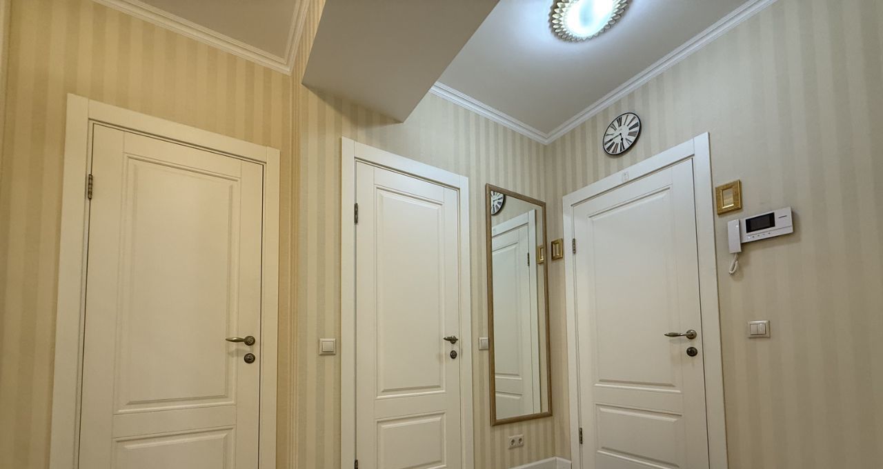 Квартира полностью меблирована и готова к проживанию. Спальня с двуспальной кроватью, ТВ, просторной гардеробной и удобным освещением. На кухне и в комнате есть вся необходимая мебель. В квартире установлена современная техника: кондиционер, холодильник, посудомоечная машина, телевизор и стиральная машина. 2 раздельных санузла. Ванная комната оснащена как ванной, так и душевой кабиной. Проведен беспородной интернет.