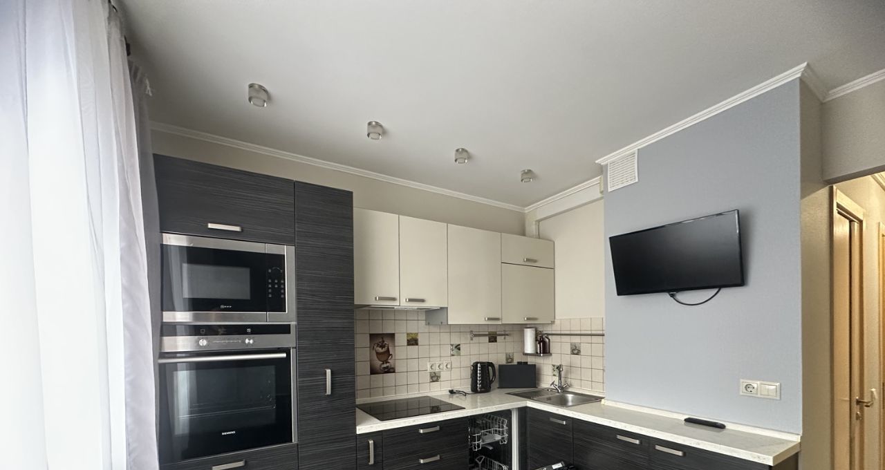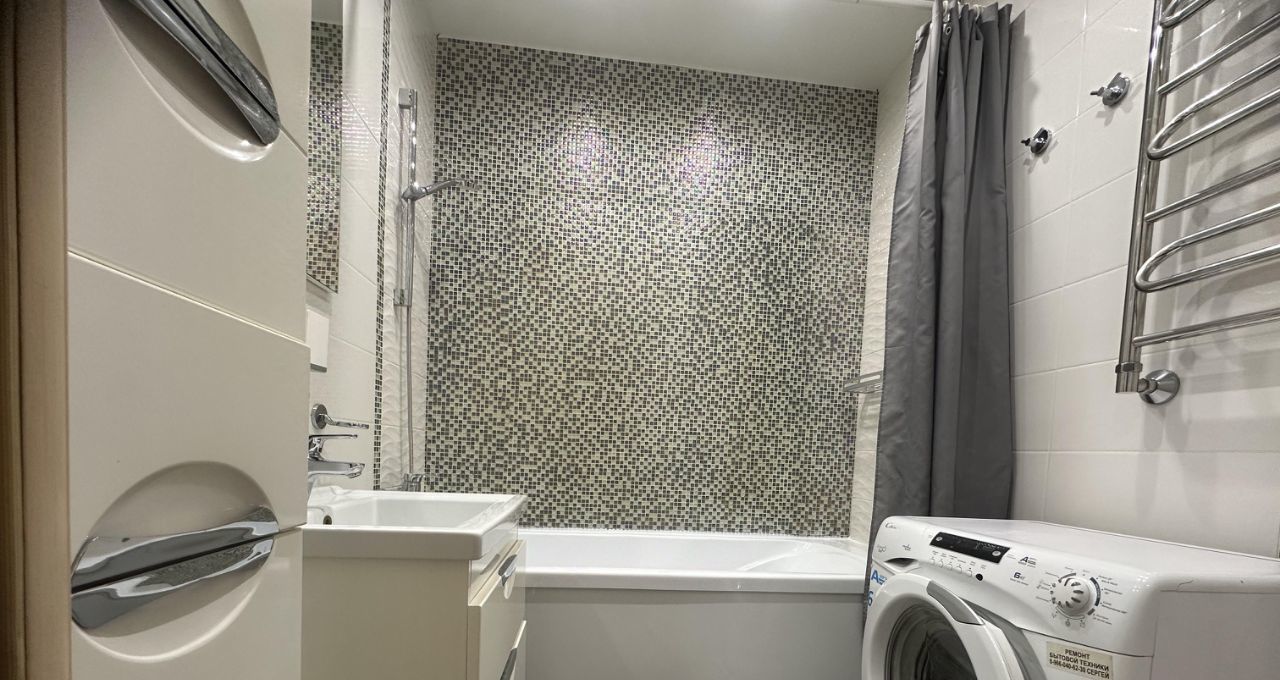 Квартира обладает современным евроремонтом и полностью готова для комфортного проживания. В наличии вся необходимая техника: кондиционер, холодильник, посудомоечная и стиральная машины, телевизор. Мебель присутствует как на кухне, так и в комнате. Просторная ванная комната оборудована ванной. У квартиры есть балкон, а окна выходят как на улицу, так и во двор, что позволяет наслаждаться тишиной и зеленью.