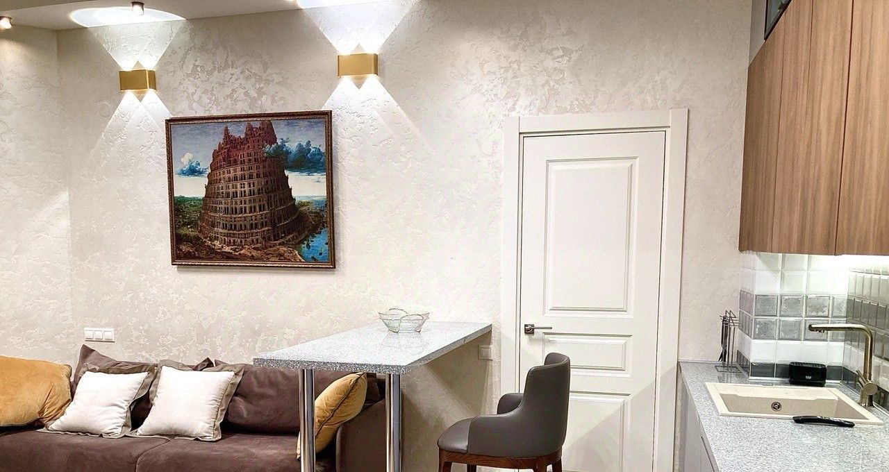Планировка: стильная кухня-гостиная, уютная спальня с гардеробной, уютный кабинет, комфортный с/у с ванной, просторный холл.