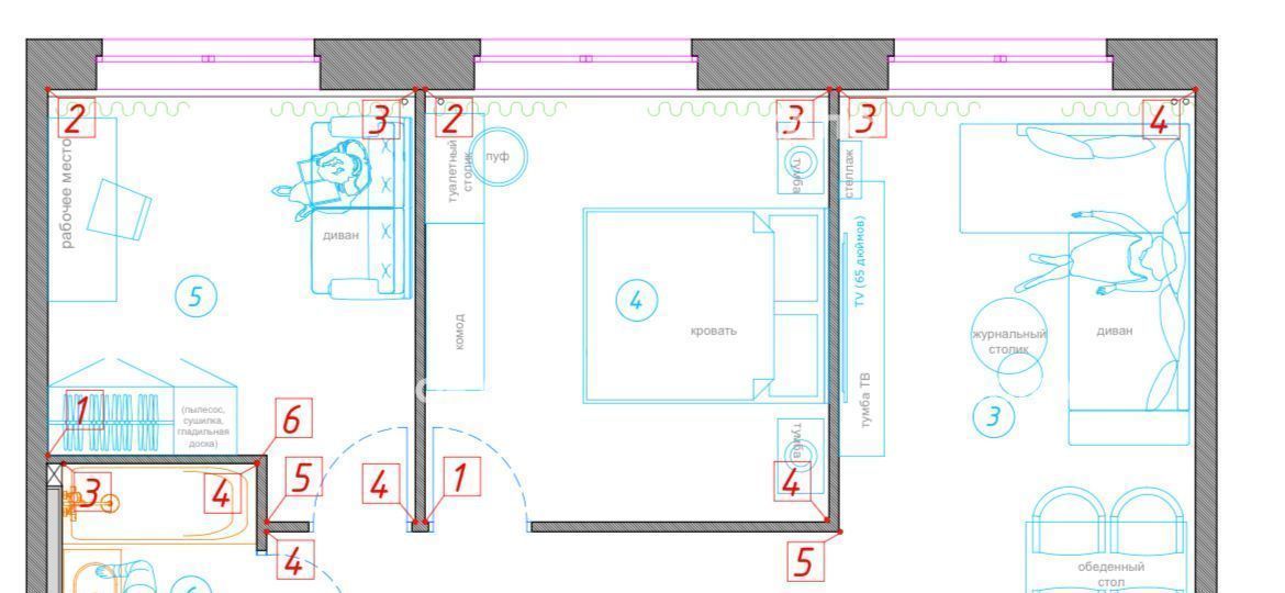 Квартира отличается стильным евроремонтом, который выполнен с использованием качественных материалов. В комнатах и на кухне установлена современная мебель и техника. Планировка продумана до мелочей: просторная кухня позволяет разместить обеденную зону и создать уютное пространство для семейных ужинов. В квартире есть один совмещенный санузел, оформленный в современных тонах. Сантехника -Jacob Delafon, техника -Bosch, кухня фасады -Fenix SOFT-TOUCH, вытяжка- Falmek, полностью меблирована. Мягкая мебель -братья Баженовы (премиальная ткань). Корпусная мебель AGT SOFT-TOUCH. Отдельная большая гардеробная.