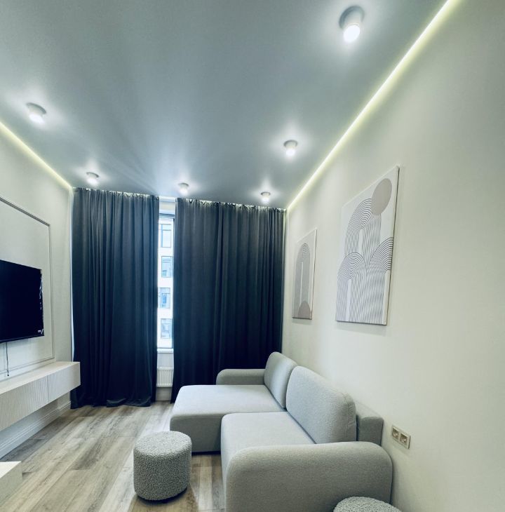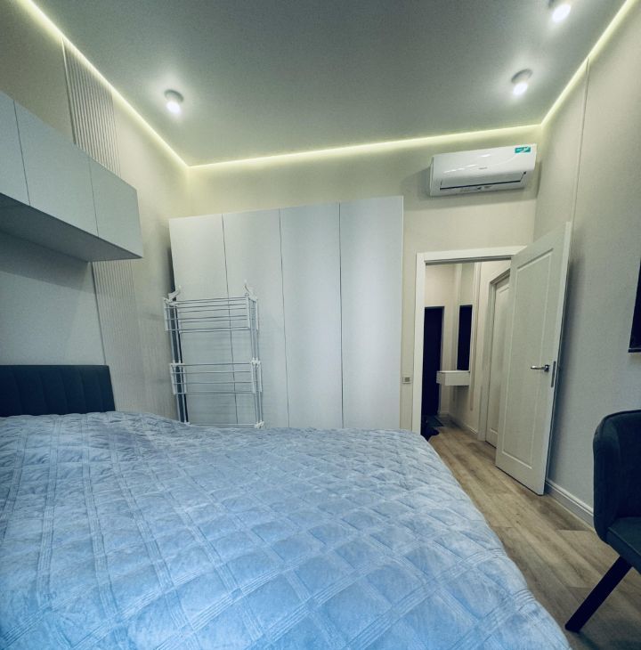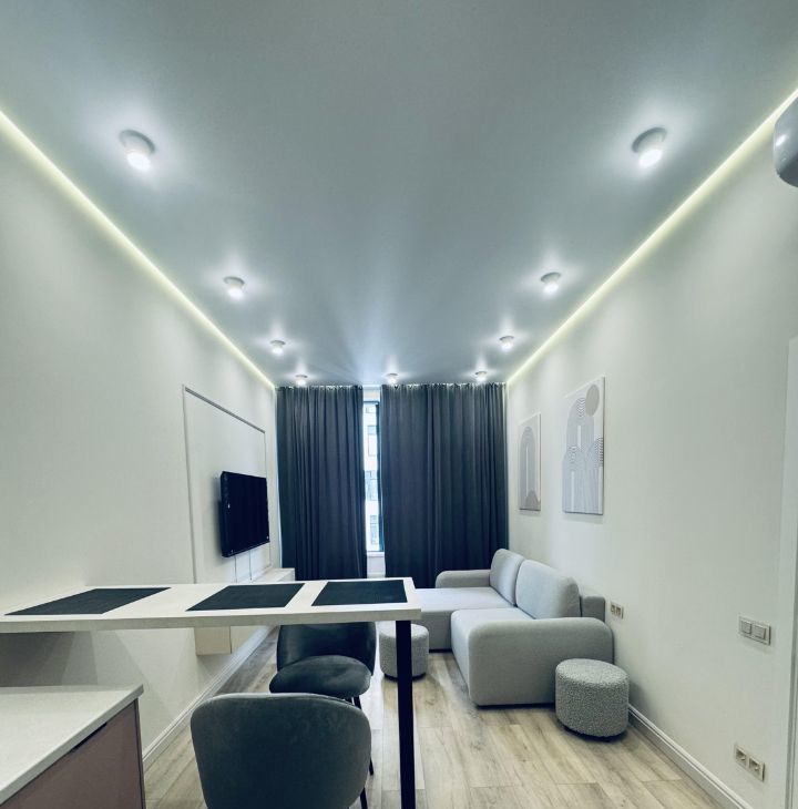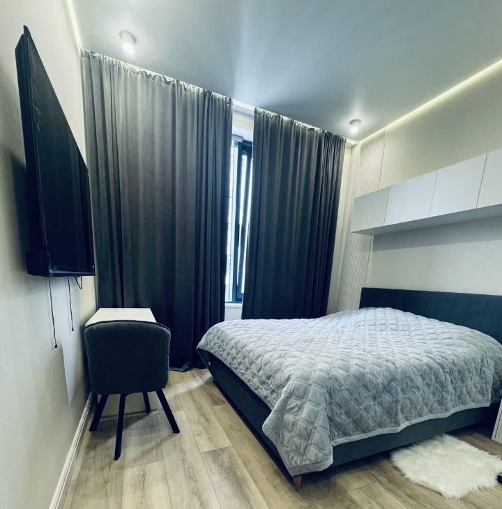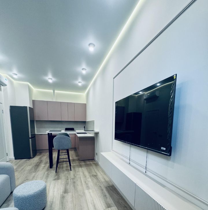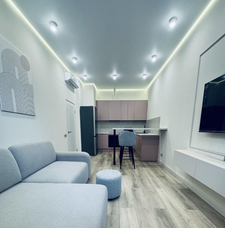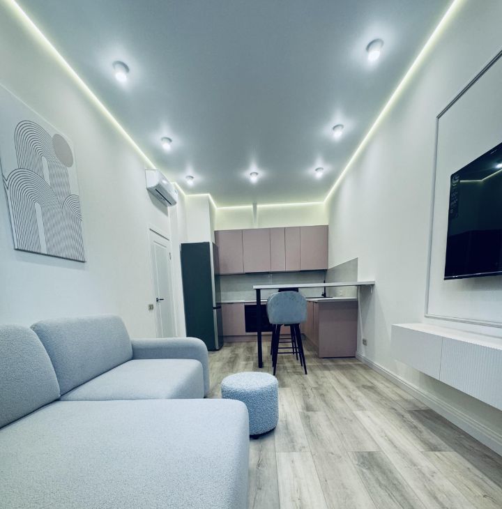 В квартире выполнен дизайнерский ремонт, что создаёт уникальную атмосферу уюта и комфорта. Кухня и комнаты полностью меблированы. В вашем распоряжении будет всё необходимое: кондиционер, холодильник, посудомоечная машина, телевизор и стиральная машина. Окна выходят как на улицу, так и во двор, поэтому, а значит, вы можете наслаждаться как городскими видами, так и тихим дворовым пейзажем. Санузел совмещённый, с современной ванной.