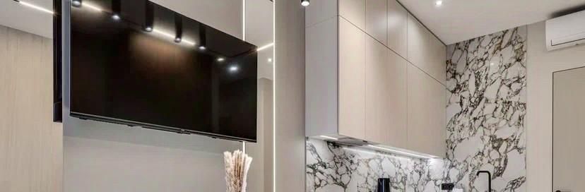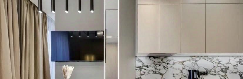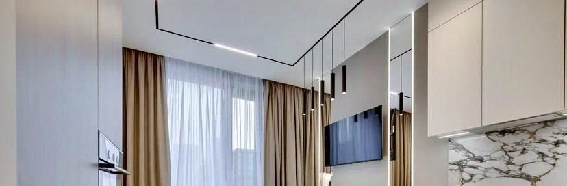 Шикарный ремонт со всей техникой и мебелью, гардеробной, постирочной, очень много систем хранения, в квартире чувствуется простор.