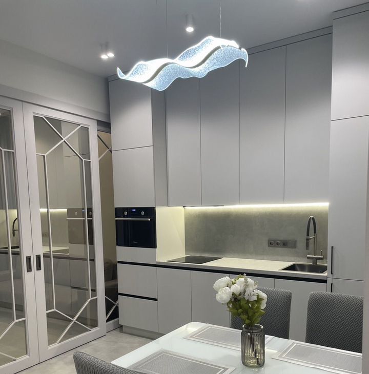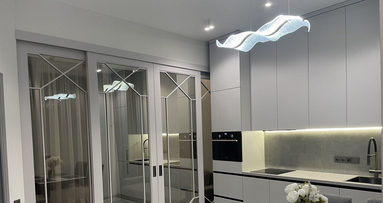 Спальню 2 и кухню разделяет красивая перегородка, позволяющая как полностью разграничить и звукоизолировать два помещения, так и объединить их в единую кухню-гостиную.