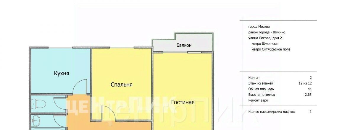 2-к кв. Москва ул. Рогова, 2 (44.0 м²)