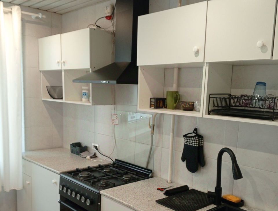 - Мебель и техника: мебель в комнате и на кухне, холодильник, телевизор, стиральная машина, плита, микроволновая печь.