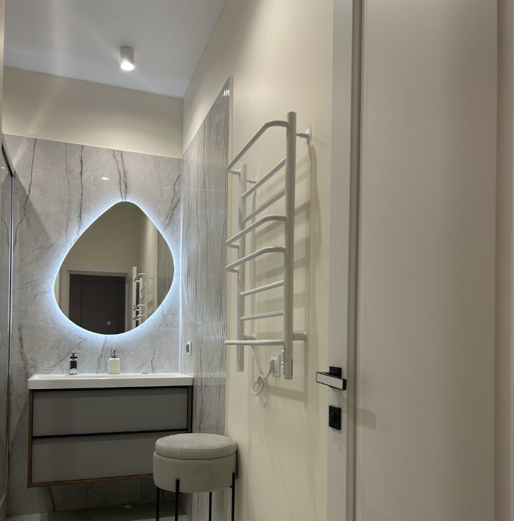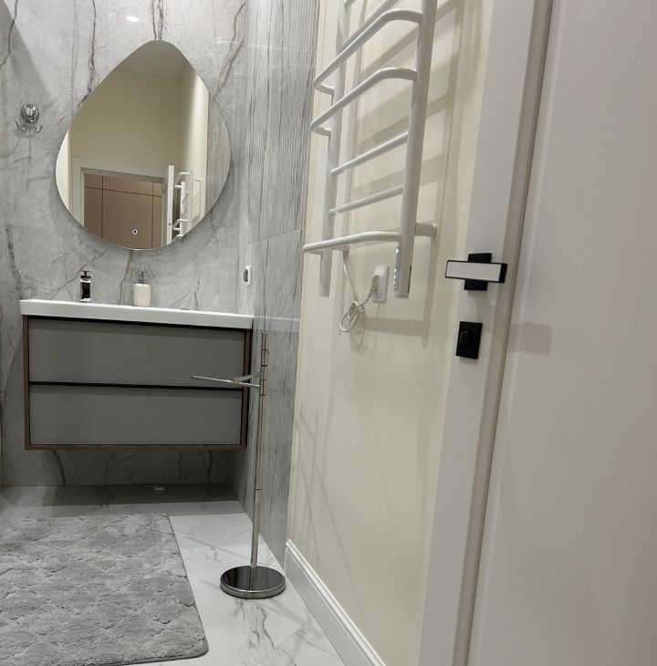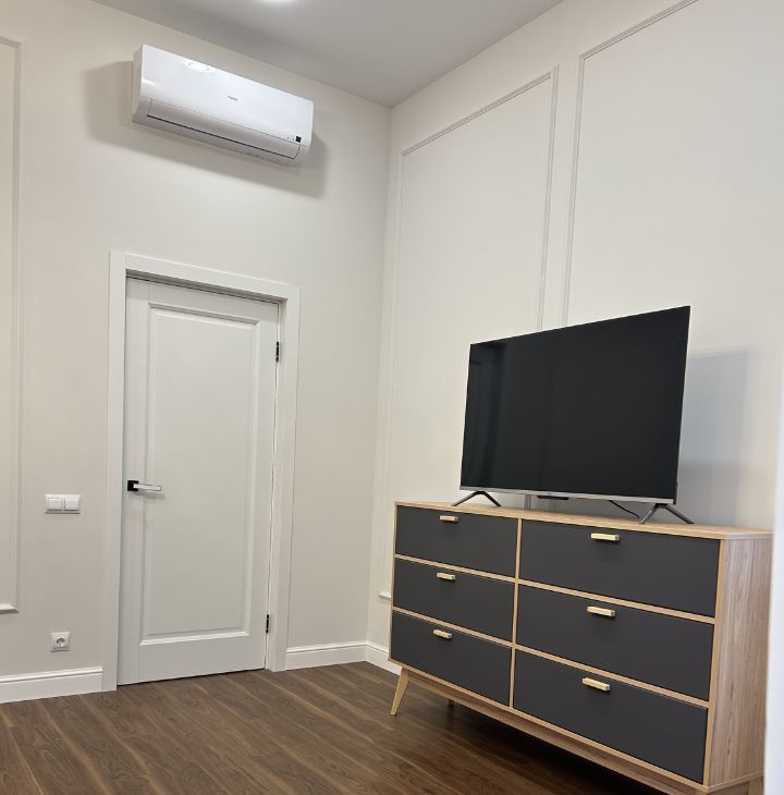 Квартира оформлена с дизайнерским ремонтом. В ней есть вся необходимая техника: кондиционер, холодильник, посудомоечная машина, телевизор и стиральная машина. На кухне и в комнате есть мебель, что позволит быстро обустроиться и начать наслаждаться жизнью в новом месте. Ванная комната оборудована душевой кабиной, а окна выходят во двор, что обеспечит вам тишину и уединение.