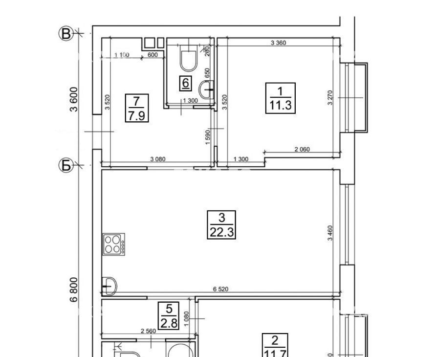 Кухня-гостиная 22.3 кв. м. Изолированные спальня - спальня (кабинет). 2 санузла. Всё абсолютно новое,объект сдаётся впервые.