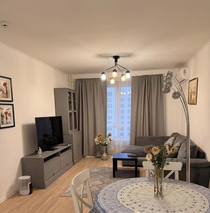 Сдаётся просторная евродвушка,на длительный срок , с хорошим ремонтом,полностью укомплектованная всех необходимой мебелью и бытовой техникой в современном доме, построенном в 2019 году.
