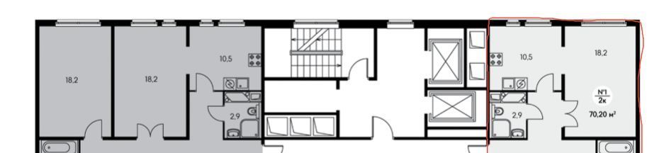 На этаже есть колясочная-кладовка (~6м²) с дверью на замке общая с соседями. На схеме она напротив лифтов.
