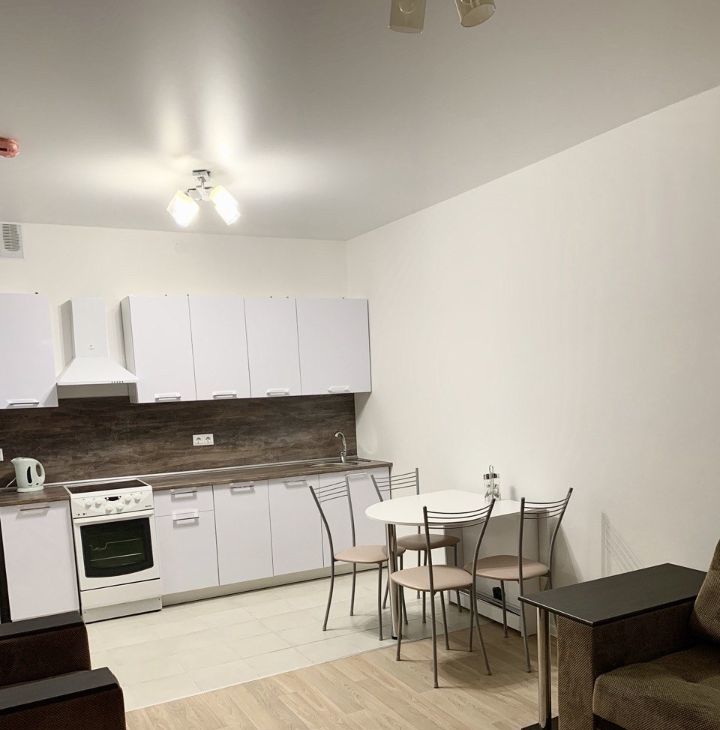 В квартире сделан качественный ремонт. В просторной кухне можно с легкостью организовать уютную столовую зону. Санузел совмещенный, оформлен в современных тонах.