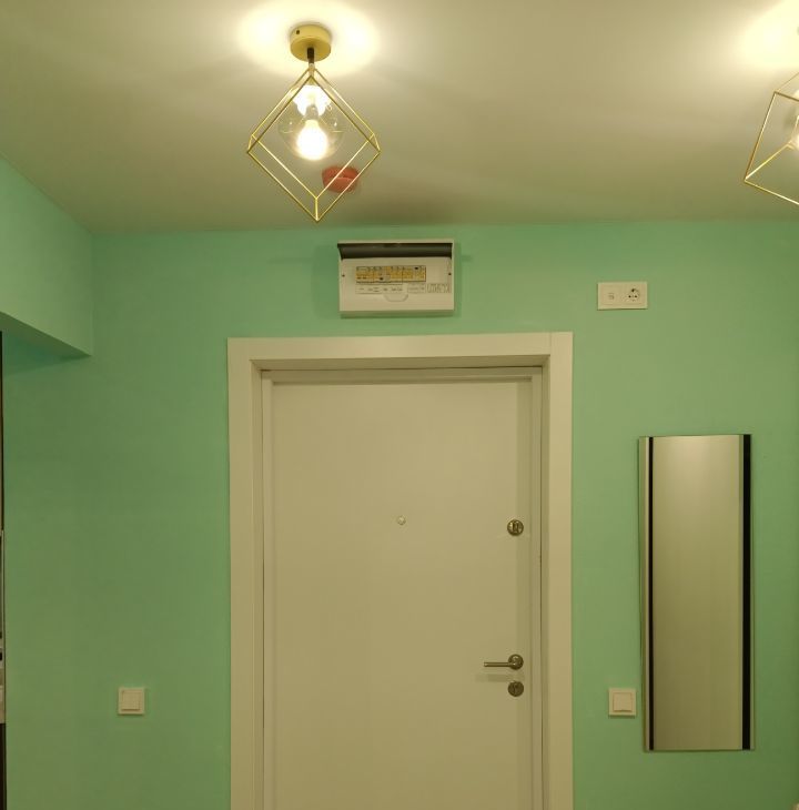 Коридор - огромный шкаф-купе, прихожая, зеркало . В кухне добавят шторы .