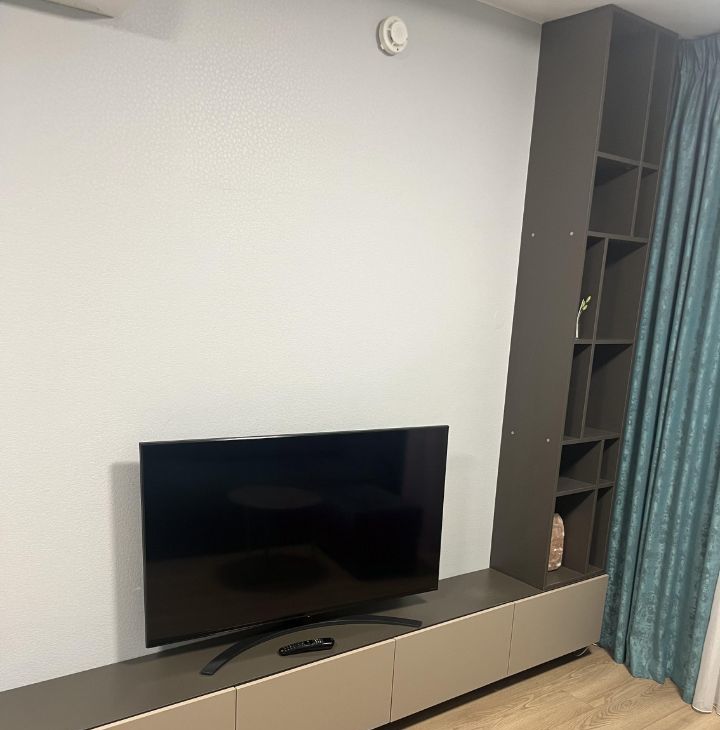 В квартире есть всё необходимое для комфортного проживания: кондиционер для создания оптимальной температуры, холодильник и посудомоечная машина для удобства на кухне, стиральная машина и телевизор. Мебель присутствует на кухне и в комнате, а в ванной комнате установлена ванна. Санузел совмещённый, что экономит пространство и делает его более функциональным.