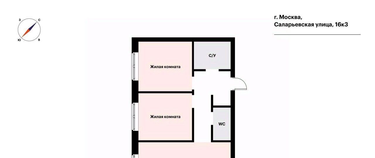 2-к кв. Москва ул. Саларьевская, 16к3 (57.4 м²)
