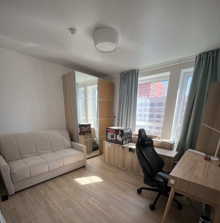 • Кабинет / Вторая комната (13,1 м²): Изолированная комната c кондиционером, организованная для продуктивной работы или отдыха. Можно использовать под кабинет или детскую. Ортопедический диван-кровать Ascona, рабочий стол и системы хранения (шкафы IKEA).