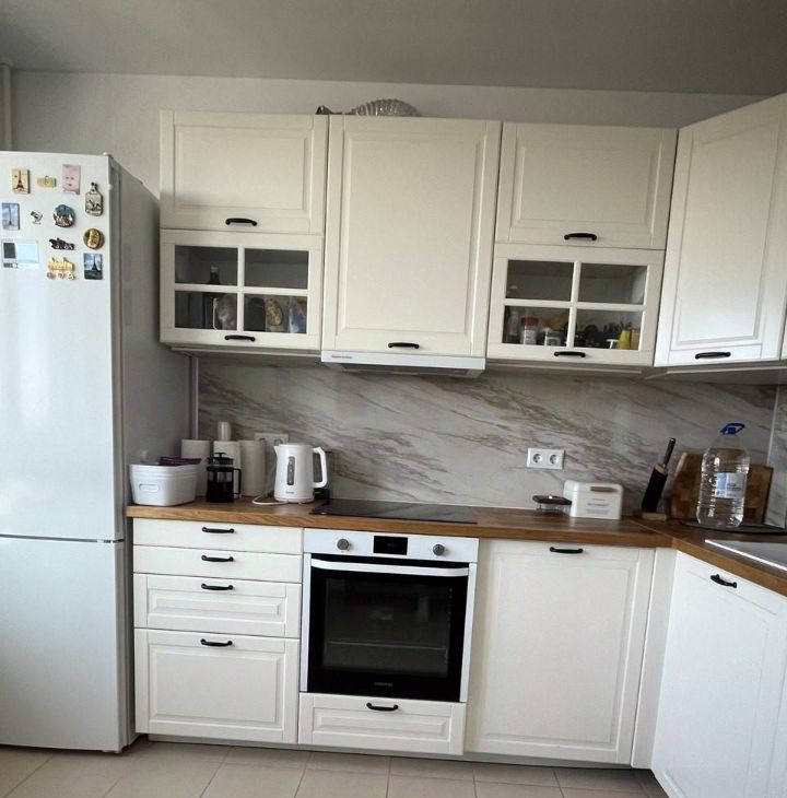 • Кухня (10,6 м²): Полностью укомплектована премиальной техникой. Встроенный гарнитур IKEA, посудомоечная машина BOSCH, духовой шкаф Samsung и варочная панель Electrolux, высокий холодильник BOSCH, микроволновая печь, стиральная машина. Установлен большой обеденный стол.