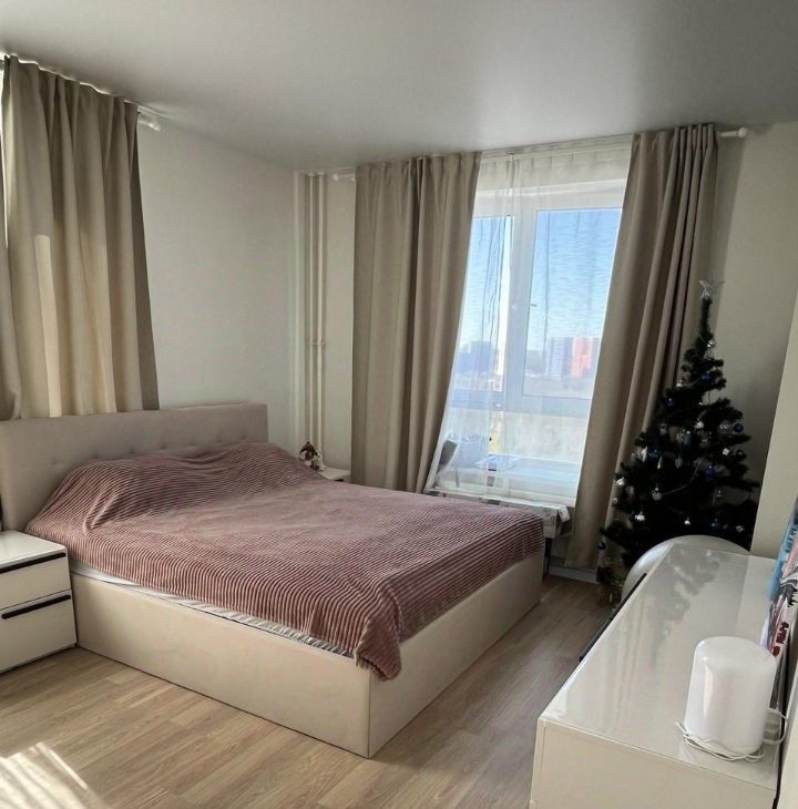 • Спальня (16,8 м²): Просторная комната с большой кроватью (180*200) с подъемным механизмом для хранения вещей, матрасом IKEA, кондиционером (сплит система), вместительным и стильным комодом и тумбами. Огромные окна на 2 стороны (юг и юго-запад) обеспечивают максимум света.