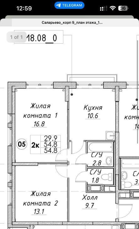 2-к кв. Москва ул. Саларьевская, 16к4 (54.8 м²)