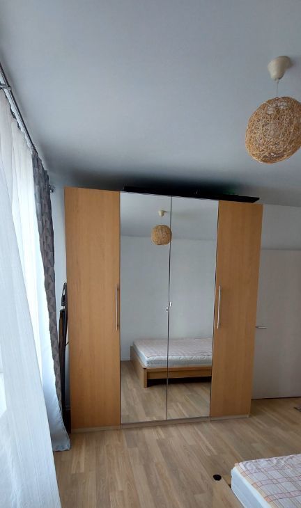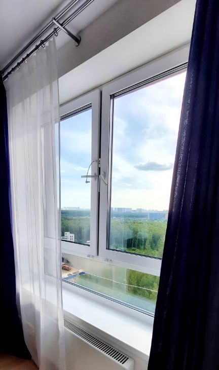 Окна выходят в сторону лесного массива с одной стороны и на жилой комплекс с другой. Свежий воздух, превосходный лес у дома в шаговой доступности.