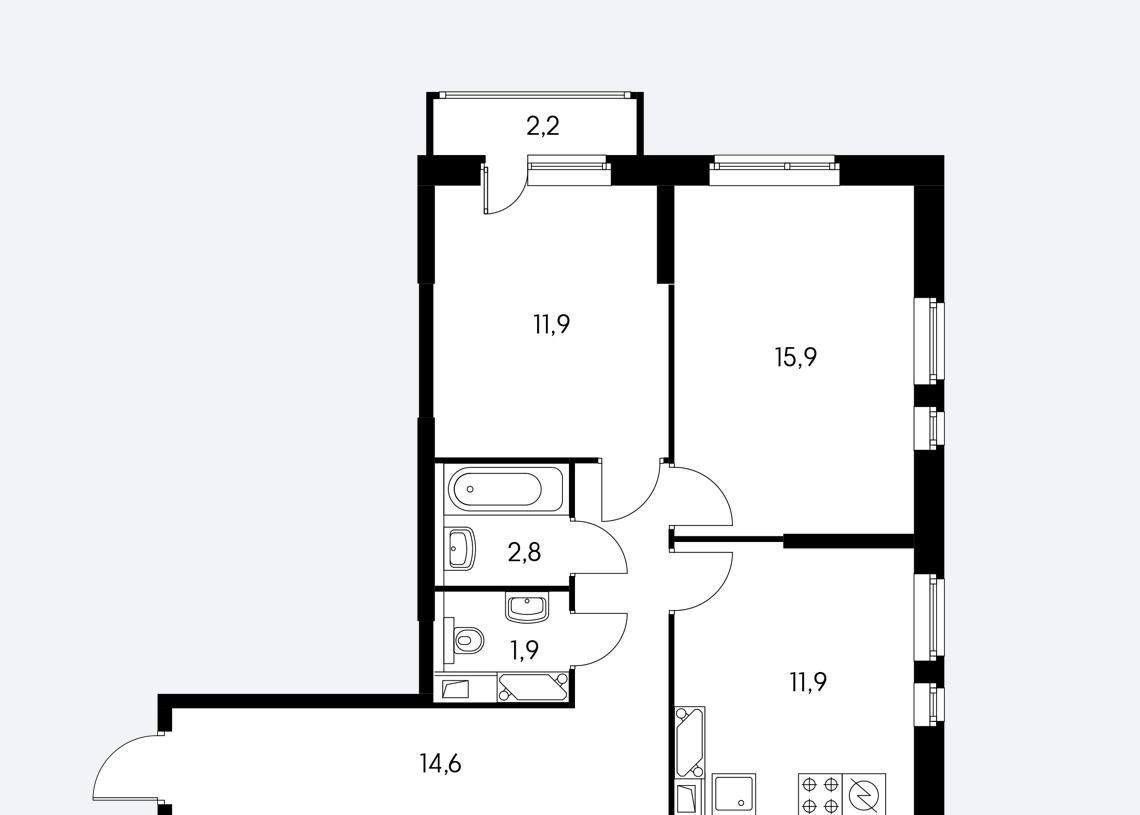 2-к кв. Москва ул. Саларьевская, 8к1 (63.3 м²)