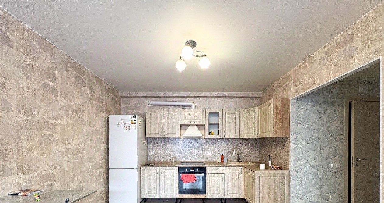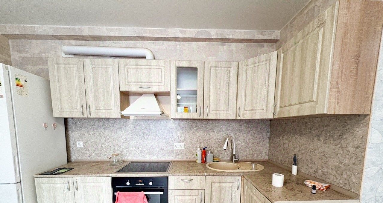 Квартира оборудована кухонным гарнитуром, мебелью и бытовой техникой. Есть: