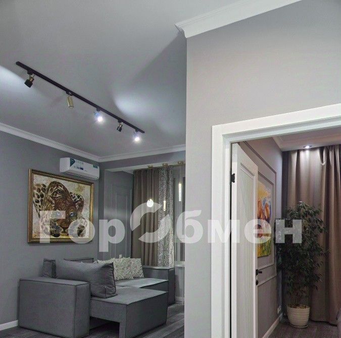 Квартира с удобной функциональной планировкой, ремонт в современном стиле: напольное покрытие керамогранит в мокрых зонах, ламинат - в жилых помещениях, стены окрашены краской, окна пластиковые стеклопакеты, из окна вид на частный сектор и сады дачников, установлен кондиционер, высота потолков 2.75 м.