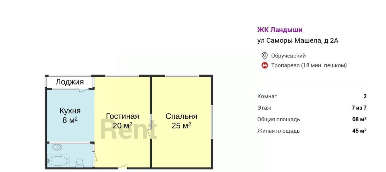 2-к кв. Москва ул. Саморы Машела, 2А (68.0 м²)