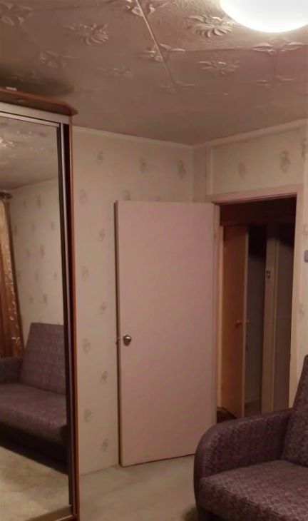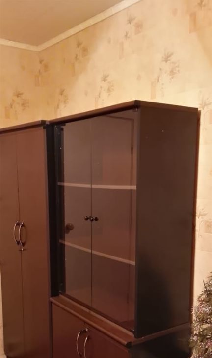 В большой комнате гостиная , двух спальный диван,встроенный шкаф купе. Выход на большую застеклённую лоджию во всю квартиру. В маленькой комнате Шкафы современные от гарнитура, кресло, стол компьютерный.