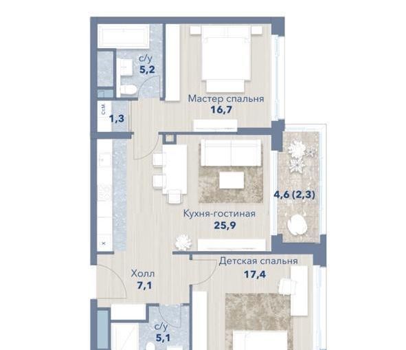 Предлагается к продаже просторная двухкомнатная квартира с общей площадью 80 кв. м в престижном клубном доме Река-2.