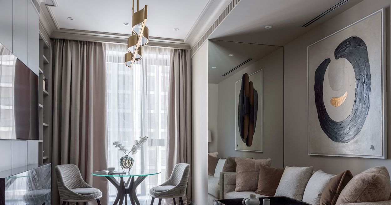 Уютная и светлая квартира с одной спальней, большой кухней- гостиной и двумя гардеробными, полностью оборудованная для проживания.