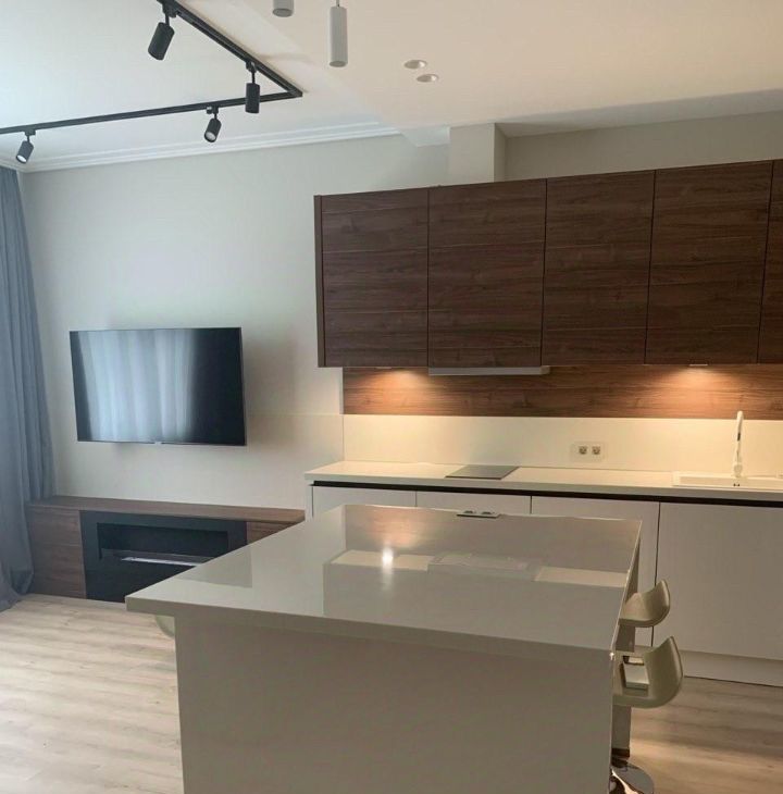 Квартира выполнена в дизайнерском стиле из современных качественных материалов, с высокими потолками в 3 метра, создающими ощущение простора и свободы. В комнатах есть вся необходимая мебель для комфортного проживания. Кухня оснащена современной техникой: кондиционер, холодильник, посудомоечная машина, телевизор и стиральная машина. Санузел совмещенный, оборудован душевой кабиной. Окна выходят на улицу, что обеспечивает хорошую освещенность в течение дня.
