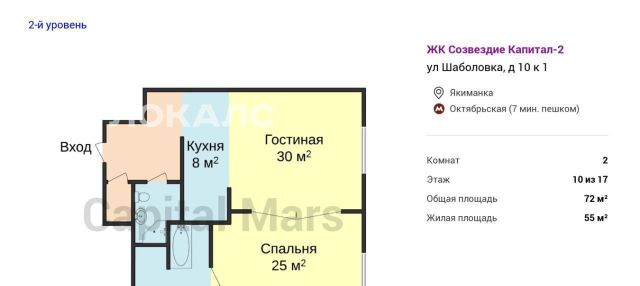 2-к кв. Москва ул. Шаболовка, 10к1 (72.0 м²)